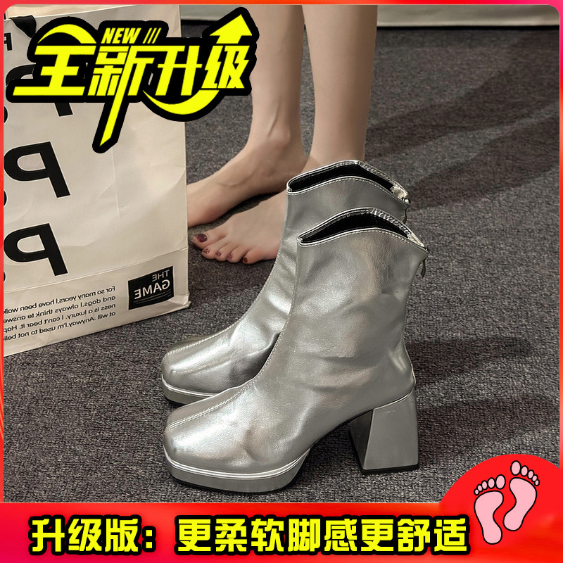女性用厚底ショートブーツ、フレンチレトロ春秋シングルブーツ、防水プラットフォーム、気質、ソフトレザーハイヒール、伸縮性ショートブーツ、スリムブーツ