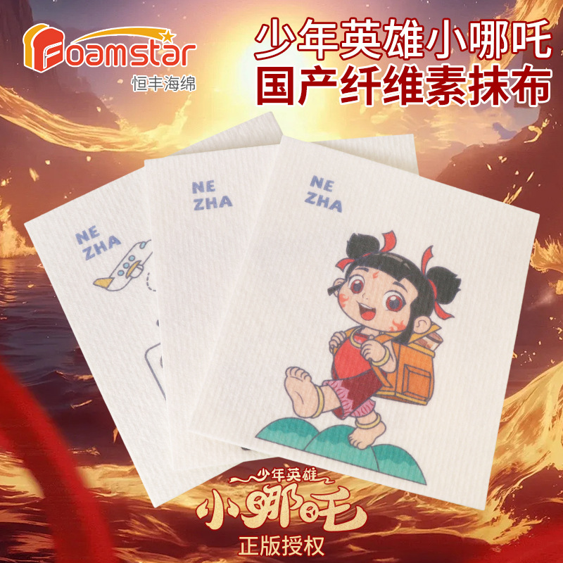 セルロース木材パルプスポンジ吸収性雑巾Xiao Nezha認定木材パルプ綿雑巾キッチン掃除食器洗いスポンジ