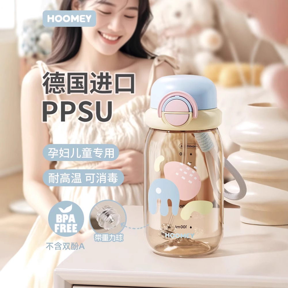 PPSU子供のコップの妊娠産婦の小学生の学校に行く専用の赤ちゃんのストローのコップはまっすぐに水の壺の目盛りのコップを飲みます。
