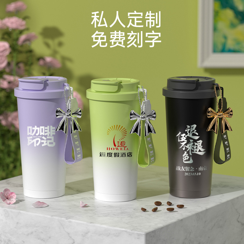保温カップ陶磁器内胆コーヒーカップ男女の高颜値ストローカップ新製品随行カッププレゼントカスタマイズ