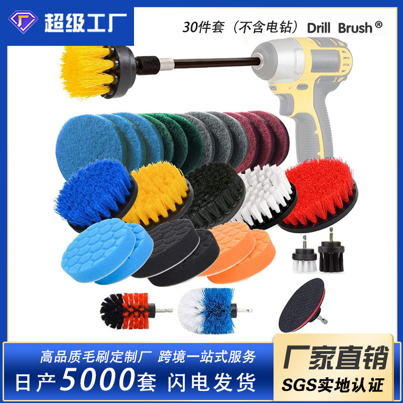 国境を越えたソースドリルブラシ30セット自動車洗浄床タイル研磨ディスクブラシ電動洗浄ツール