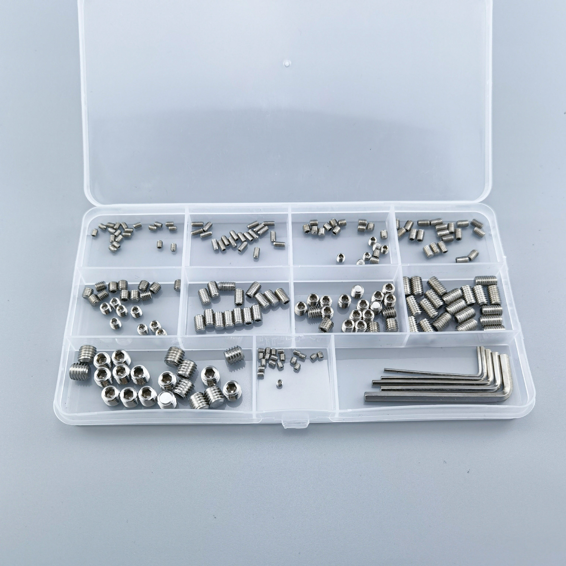 国境を越えて人気のある225pcsステンレストップ糸機米ねじの六角凹端締めねじとレンチ