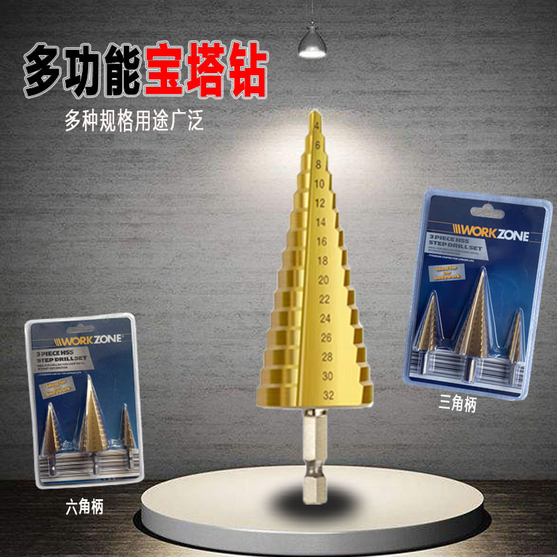 特価大三本三角柄直溝階段ドリル4-32、4-20、4-12、チタンメッキ宝塔ドリル穴開け器