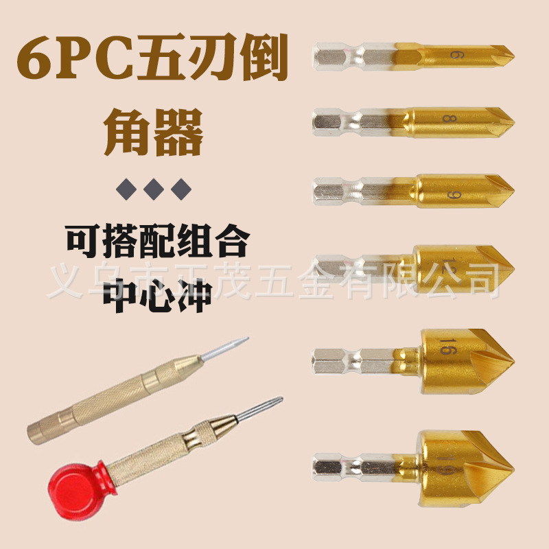 六角柄チタンメッキ五刃面取り器6-19mm木工面取りナイフセット6pcs木工穴あけ器
