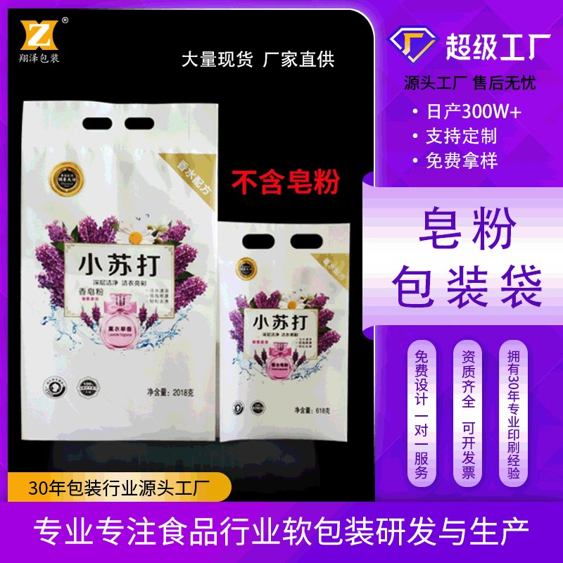 現物直供多規格石けん粉袋日化用品袋石けん粉オルガン袋背封包装複合カラープリント袋