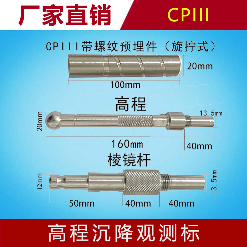 Cpiii標高沈降観測標準セット3点セット埋込材プリズムロッド高精度304ステンレス