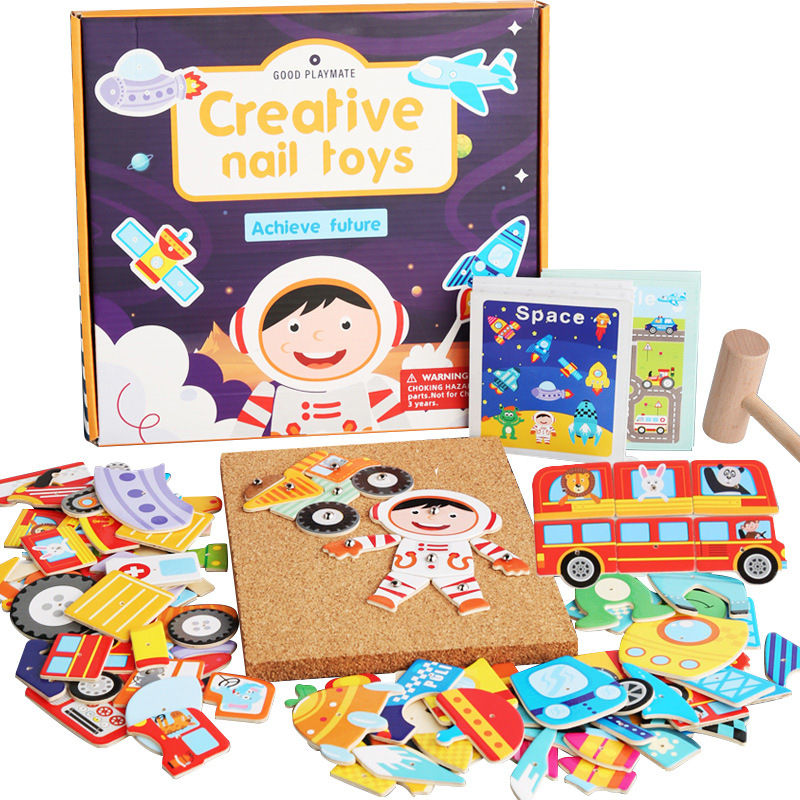 交通宇宙ロケットdiyの組み合わせ創意パズルのハンマーで釘を打って釘を打ちます。