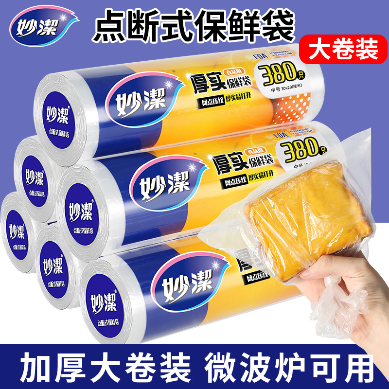 妙潔鮮度保持袋食品級家庭用食品袋密封厚手使い捨てビニール袋キッチン冷蔵庫耐高温