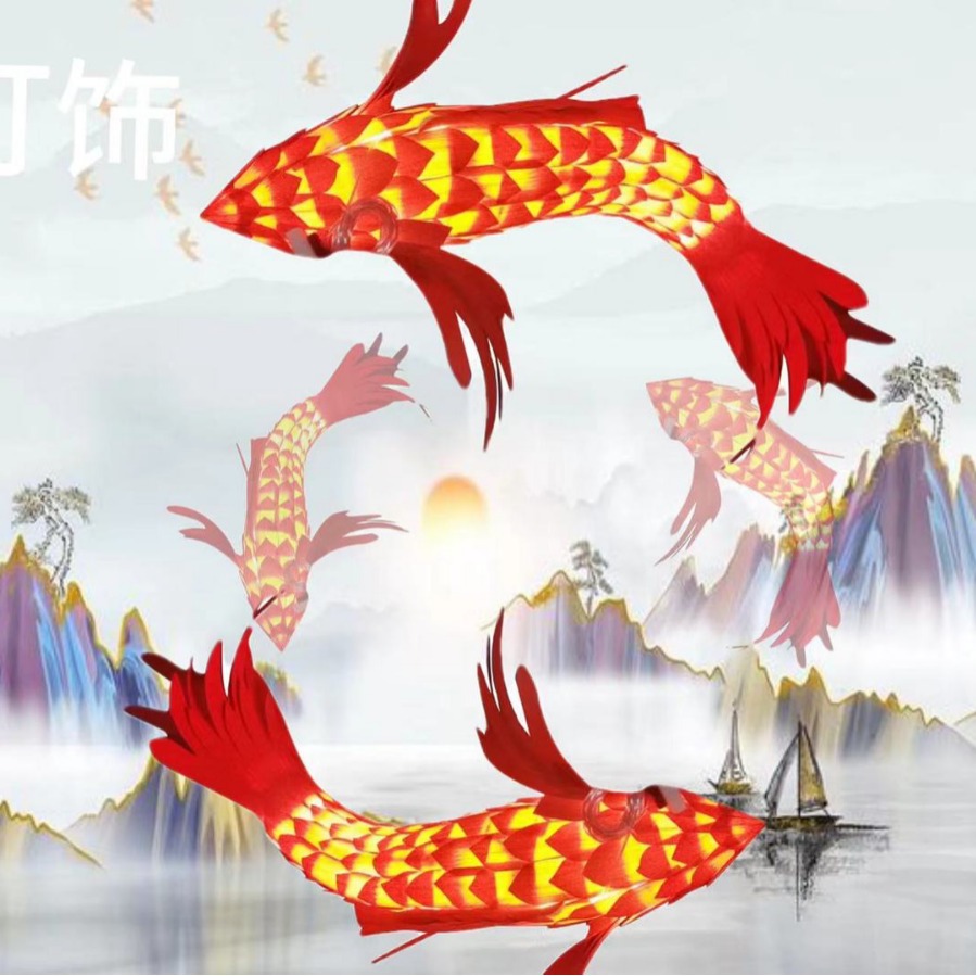 赤い魚の形のシャンデリアの新しい中国式のレストランの火鍋の店のホテルの造形灯の民宿のホテルの木の皮の魚の明かりのホールの魚