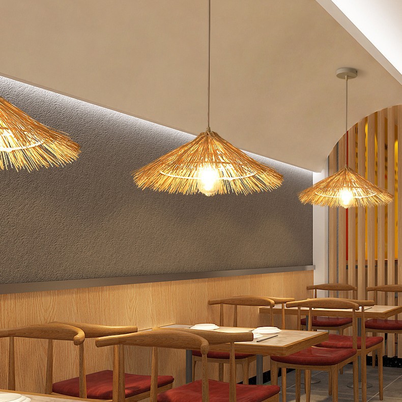 藤編み麦わら帽子シャンデリア通路廊下火鍋店農家楽中国風シャンデリア茶室階段日本式民宿照明