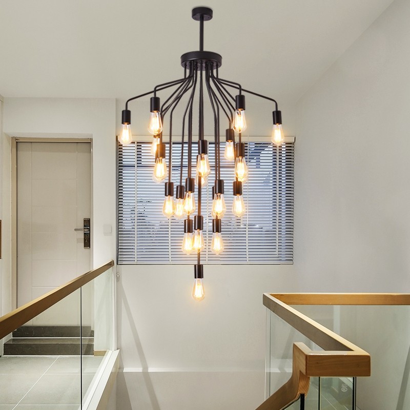 レトロ工業風シャンデリア創意個性客間灯アメリカ式複式楼別荘階段灯服装店長シャンデリア