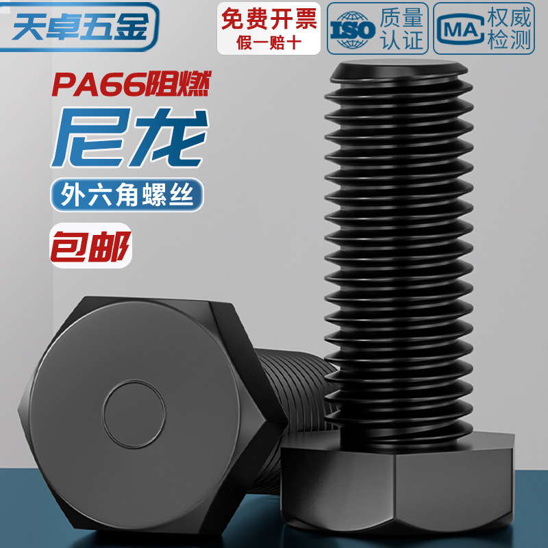 黒色絶縁難燃ナイロンプラスチックプラスチック外六角ねじボルト延長スクリューm3 4m 6m 8m 10m 12