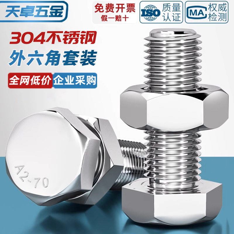 M18-M36 304 ステンレス鋼外側六角ボルトネジナットセット 4 組み合わせ M20M22M24M27M33