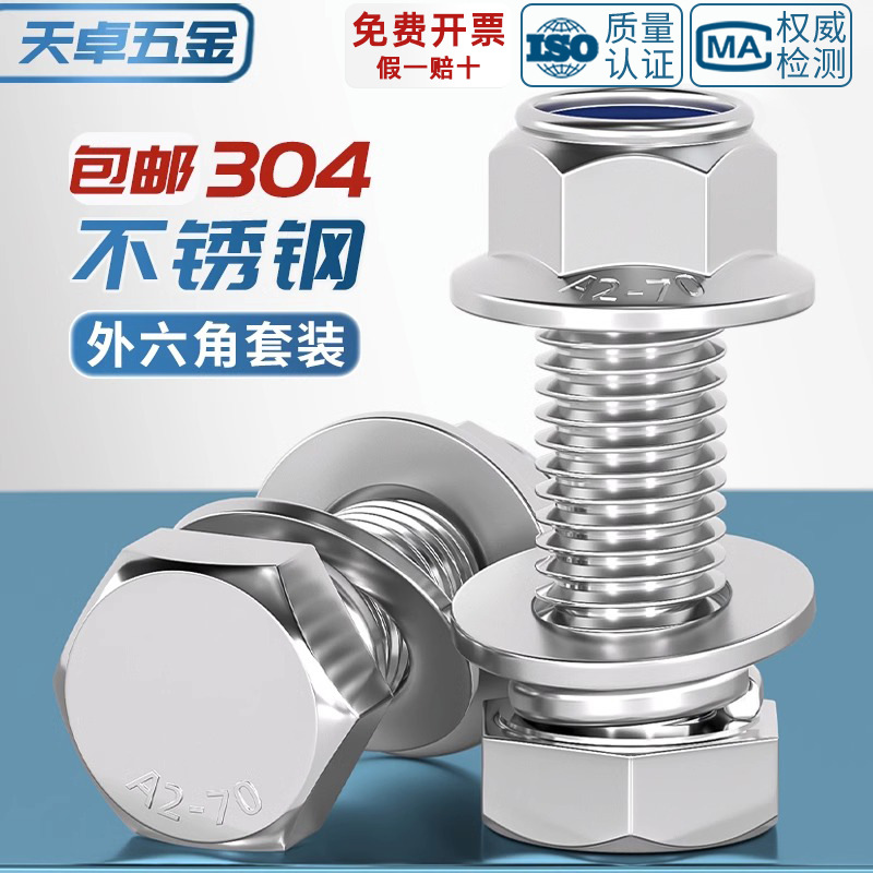 304 ステンレス鋼外側六角コンビネーションナイロンフランジ緩み止めネジとナットセットロックボルト M3M4-M16