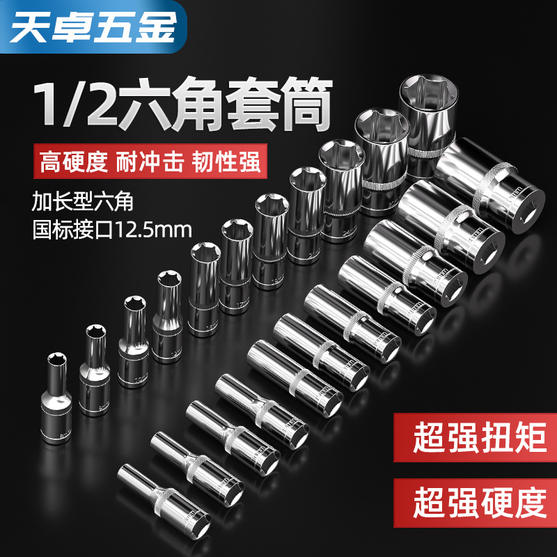 送料無料 1/2 六角ソケット 12.5 ミリメートル 6 角ソケットヘッドスリーブビッグフライツールソケットレンチアクセサリー組み合わせ