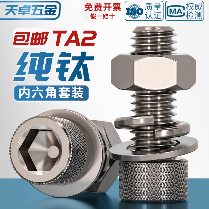 国家標準 TA2 純チタン六角穴付きネジ、ボルト、ナット、平座金、弾性座金 4 組み合わせセット M4M5M6M8M10M1