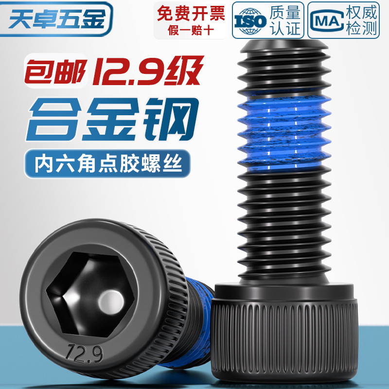 12.9段高強度内六角耐脱ねじ防松点ゴム防振塗布ねじm 2m 3m 4m 5m 6m 8