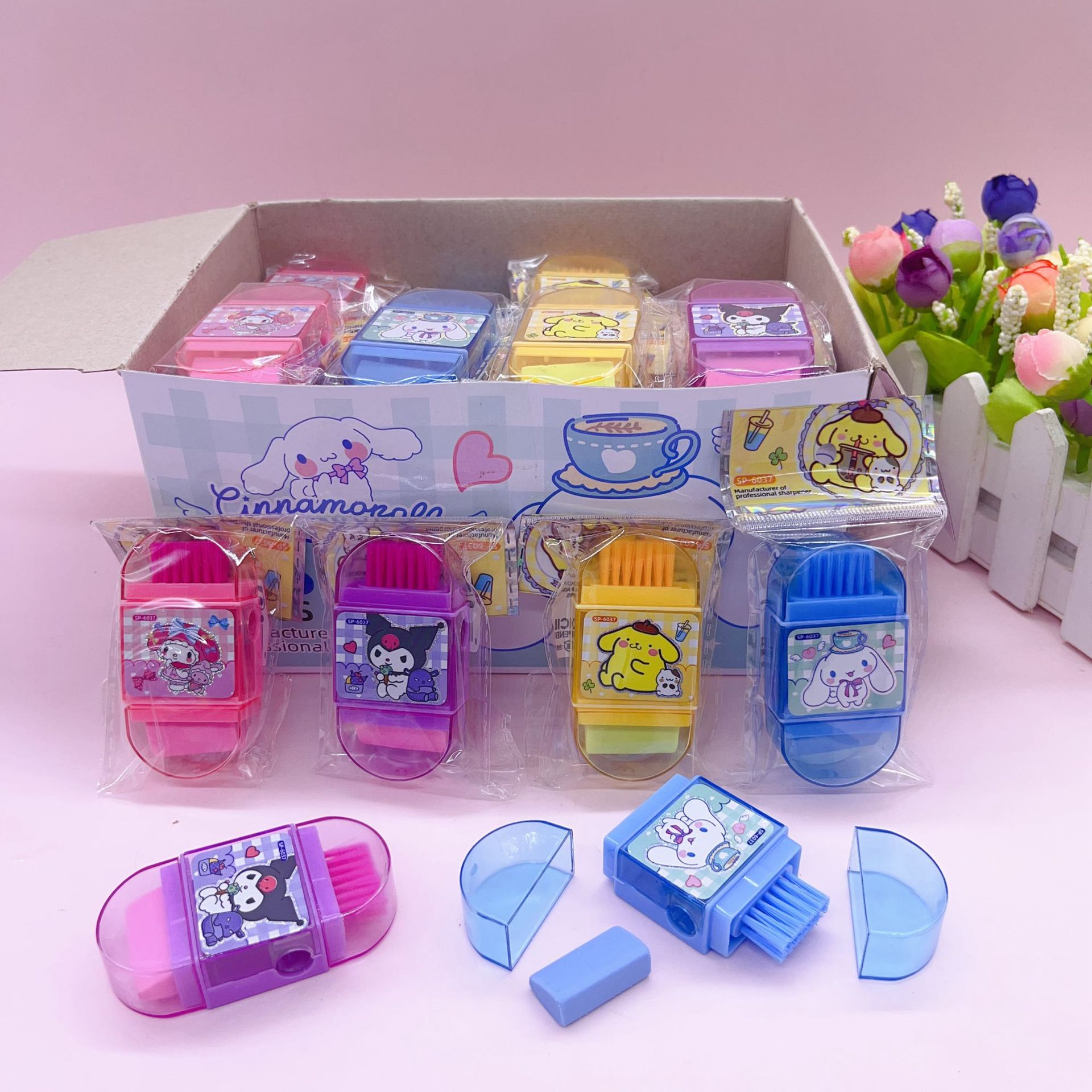 かわいい漫画の単孔の鉛筆の包丁の学生の子供の消しゴムのブラシの三つ組の子供の鉛筆は筆を拭きます文房具