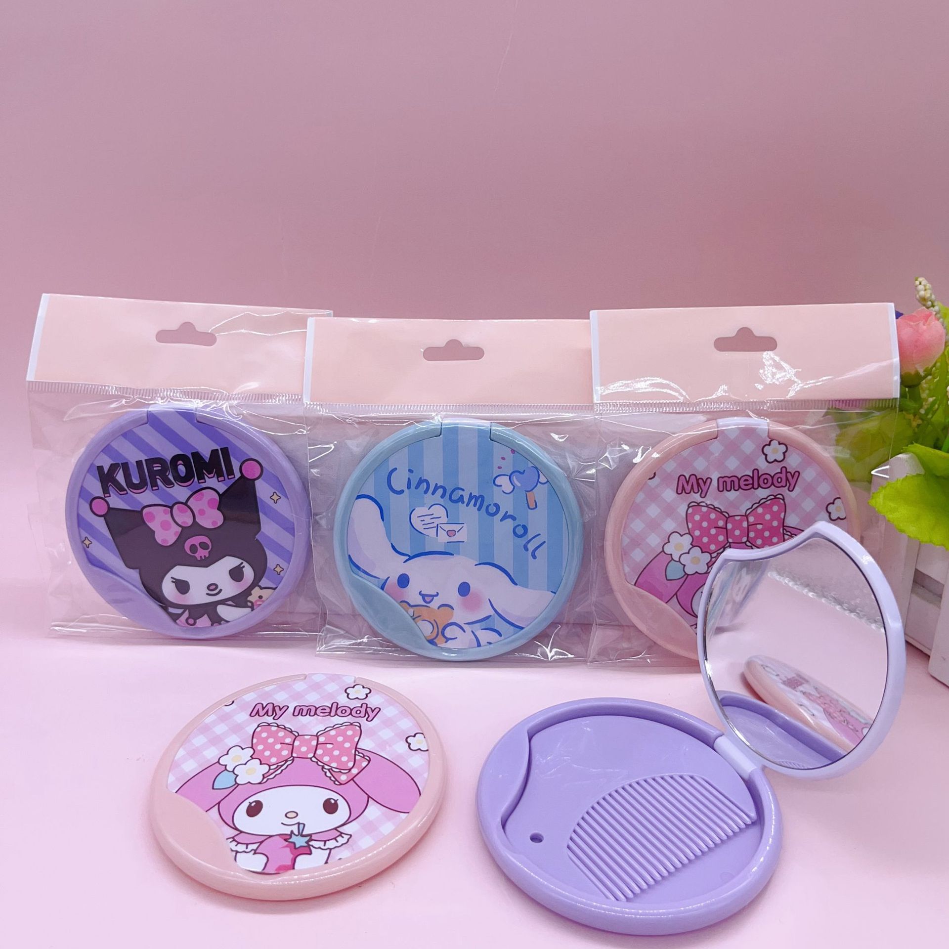 アニメの甘くて可愛い折りたたみ鏡と櫛付き家庭用携帯鏡学生化粧鏡女子学生ミニ携帯鏡