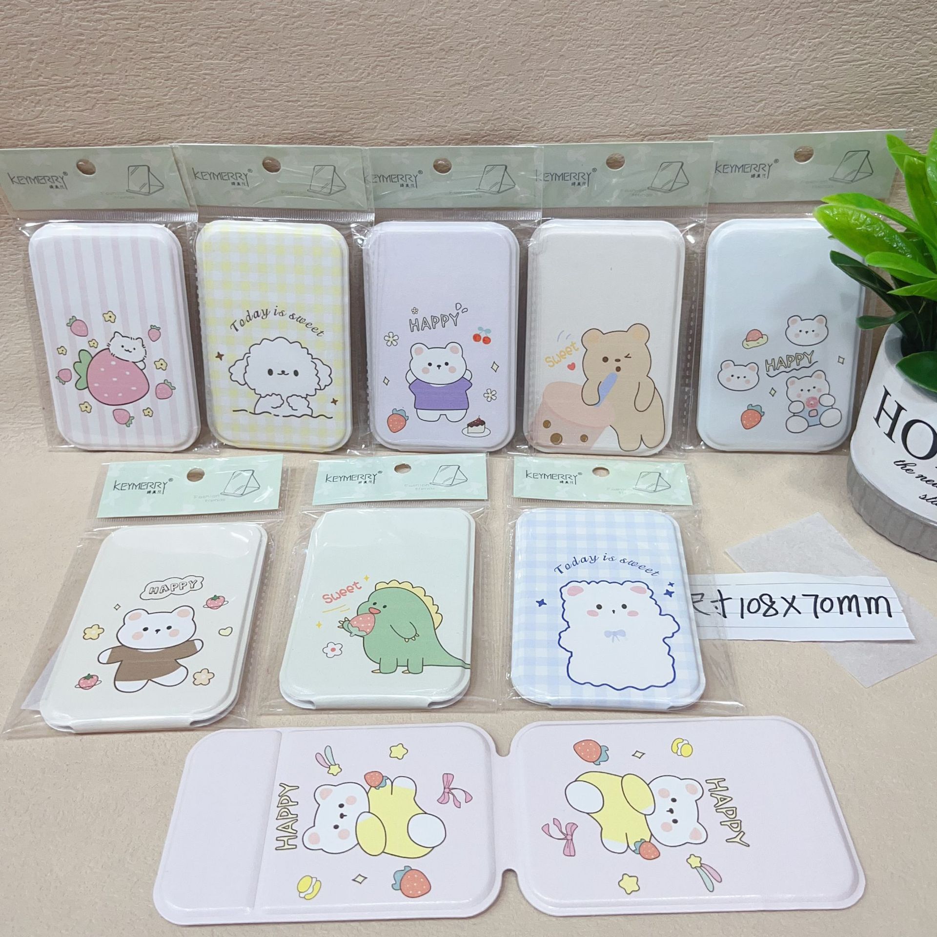 かわいい漫画の丸いミラー、四角いミラー、キュートでかわいいフラット折りたたみ化粧鏡、ミニポータブル小型ミラー賞品