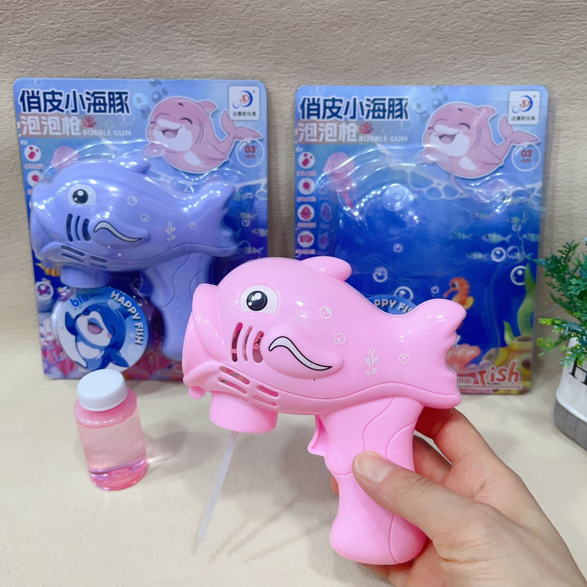 子供用ハンドヘルド全自動バブルマシン夏の水遊び遊び心のあるイルカ漫画スタイルバブルガンおもちゃ卸売