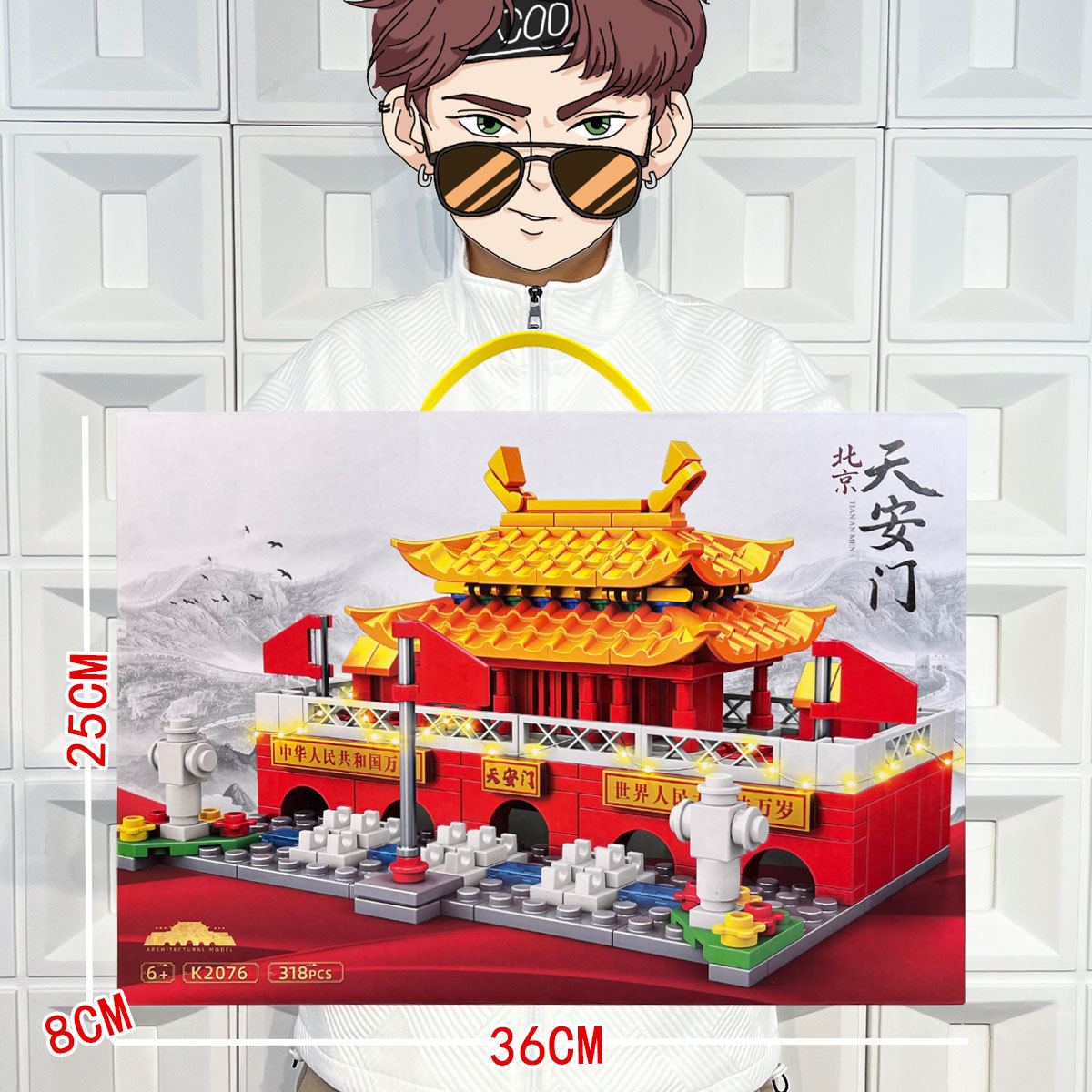 天安門広場国潮積み木玩具互換レゴ益智組み立て模型灯光早教機構プレゼント