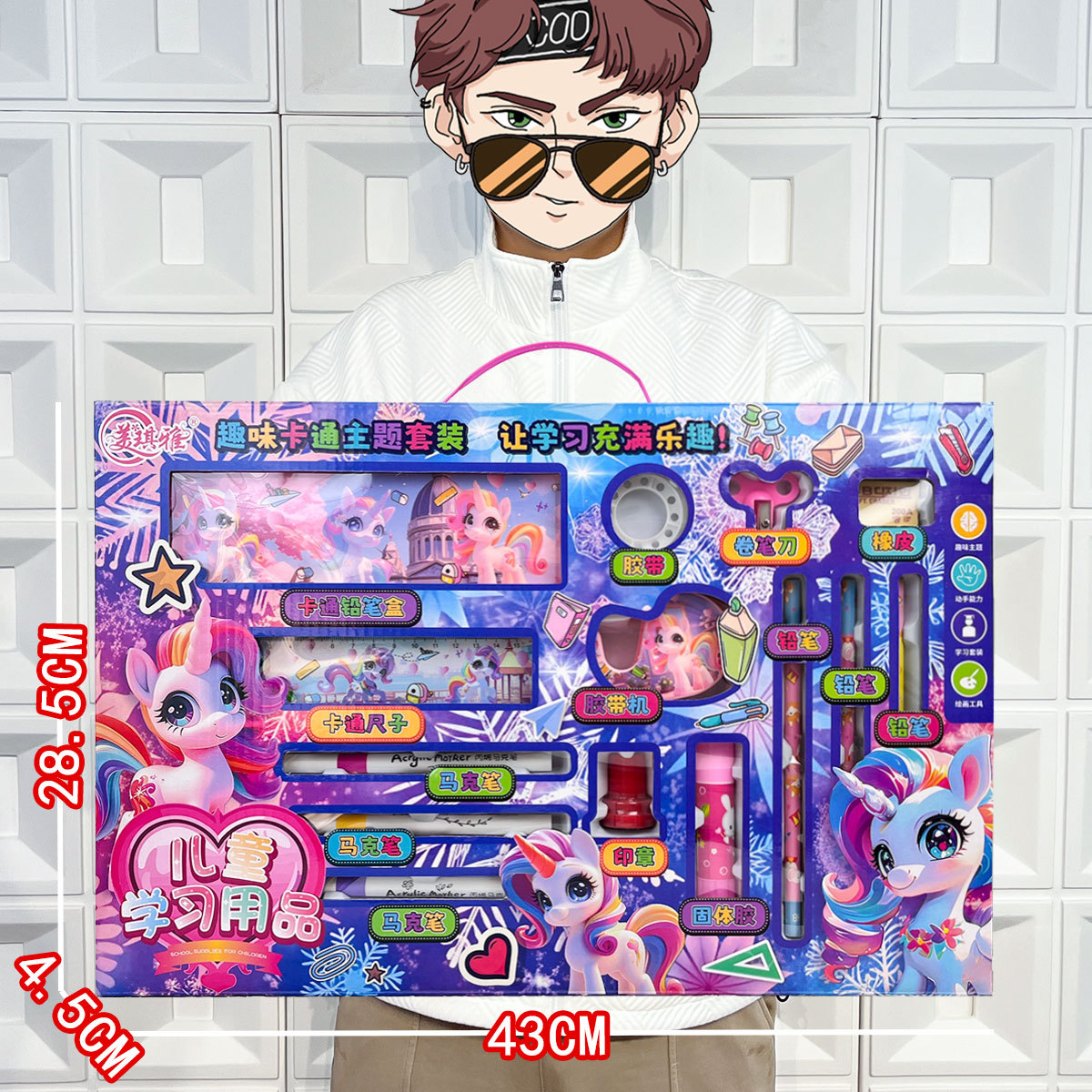 女の子の学習用品の文房具セットDIY漫画の虹の馬の鉛筆の箱の幼稚園の早教の機関の贈り物