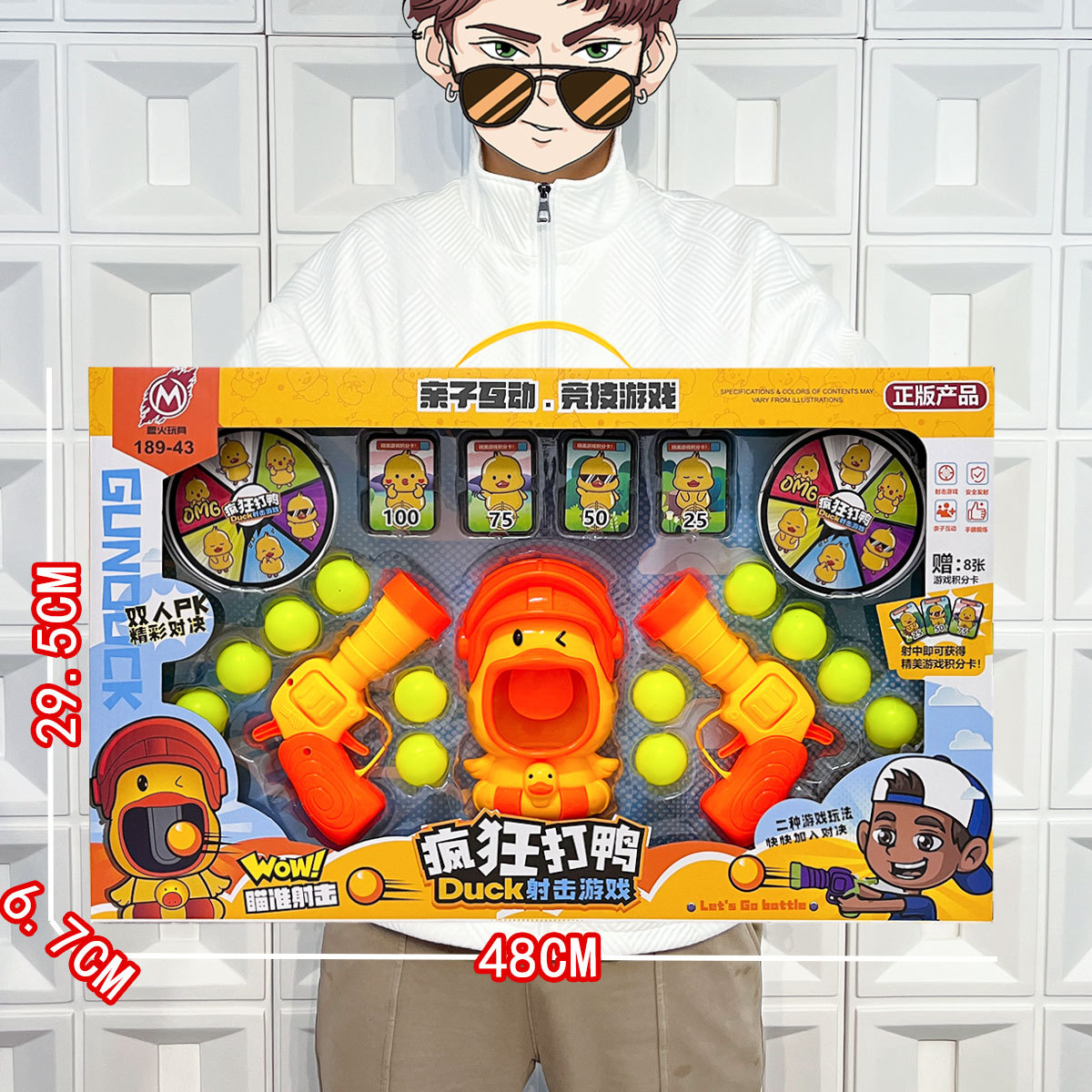 子供の漫画のおもちゃの銃の卓球の黄色のアヒルの標的の柔らかい弾の銃の射撃のインタラクティブなスーツの幼稚園の機構の贈り物