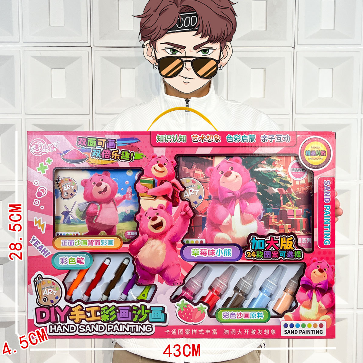 子供の益智のイチゴの粉の赤い熊の手作りのDIYの落書きの彩色の絵の砂の絵のおもちゃのセットの育成訓練機関の贈り物