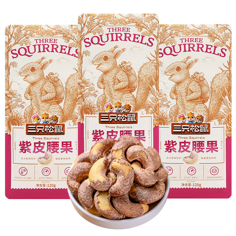 ワンピース配送 三ツリーウサギ 紫皮カシューナッツ 120g/袋入り カジュアルナッツスナック デイリーナッツ 送料無料