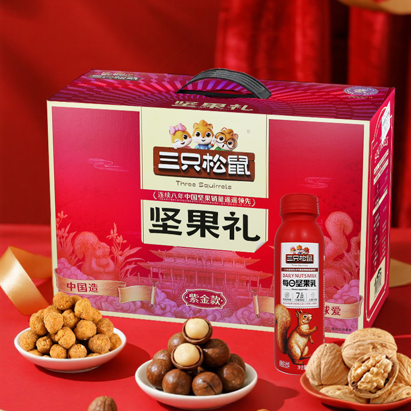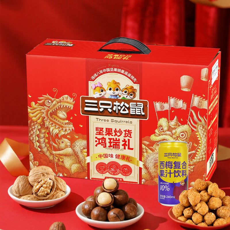 端午節新作 3 つのリス レッド ゴールド ナッツ ギフト ボックス 1635 グラム/10 袋スナック ギフト パック デイリー ナッツ