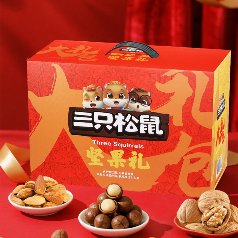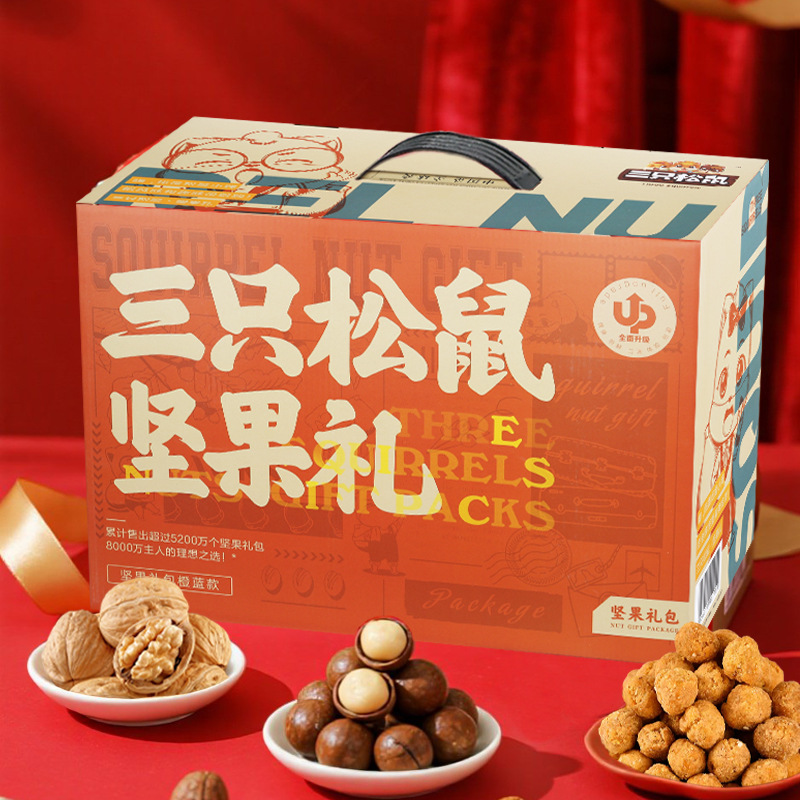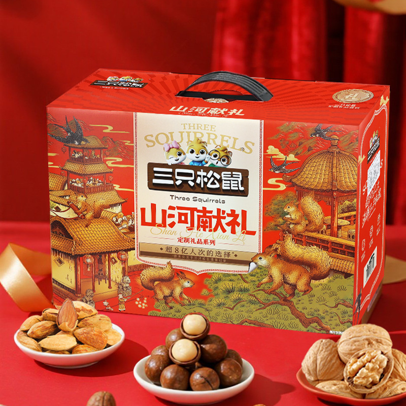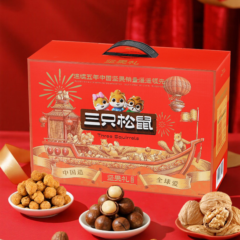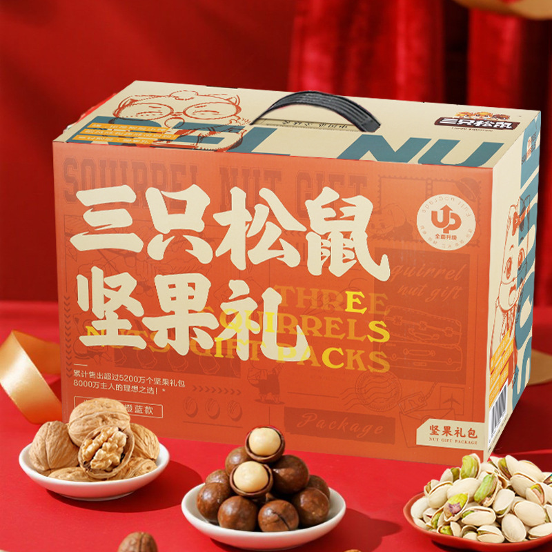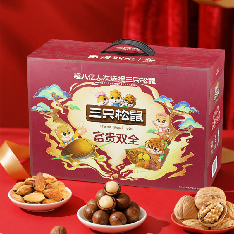リスナッツ三匹大礼箱騰龍金2365g/17袋混合間食大包プレゼント箱