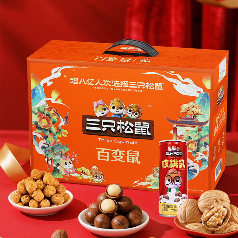 リス3匹の純粋なナッツのギフトボックス2430g/13袋のミックススナックのギフトバッグ