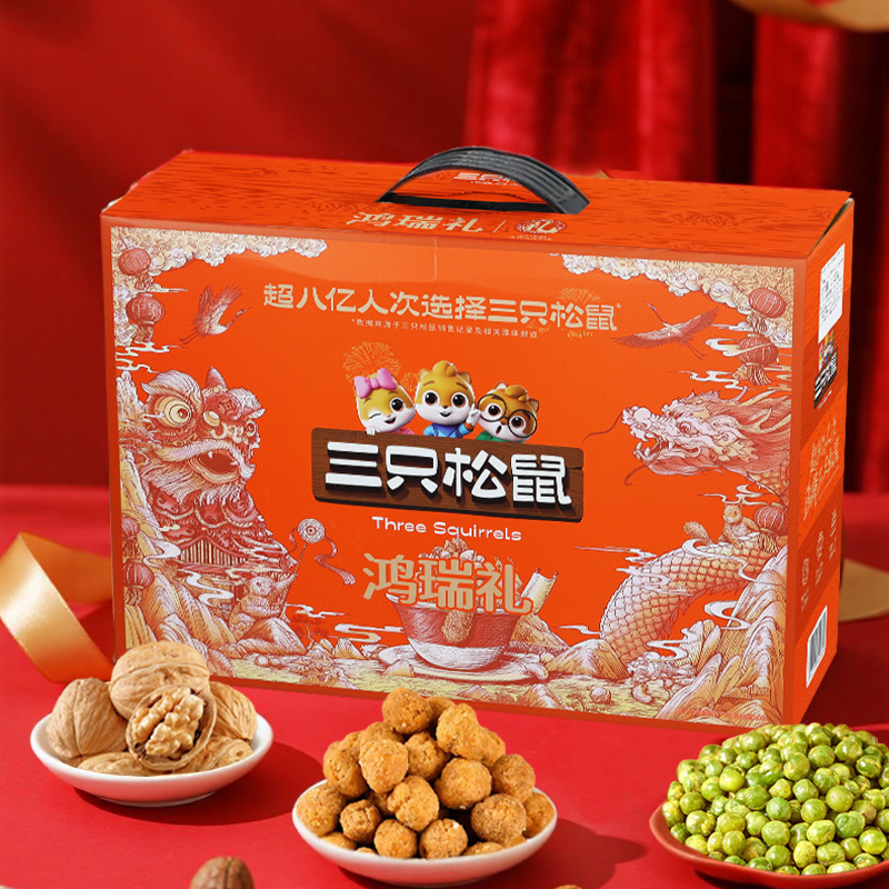 リスナッツ3匹のギフトボックス瑞紅金1449g/12袋入りスナックバッグナッツ炒め品セットプレゼント