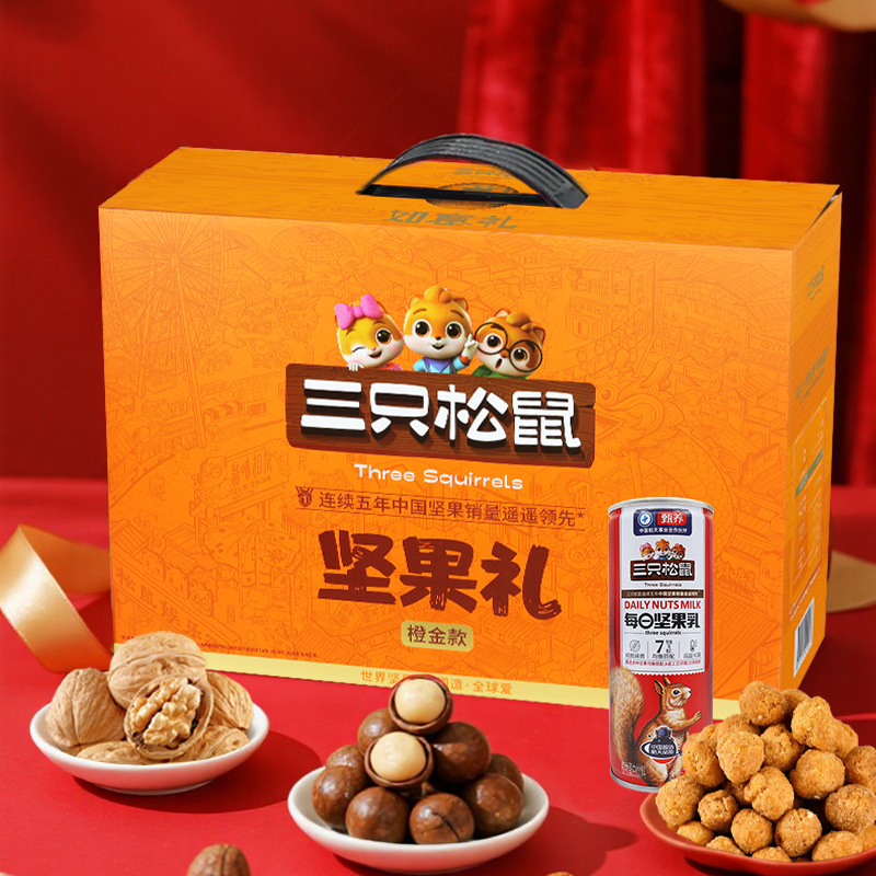 リス3匹の純粋なナッツのギフトボックス1450g/10袋の混合スナックのギフトバッグのナッツ炒め物のセット