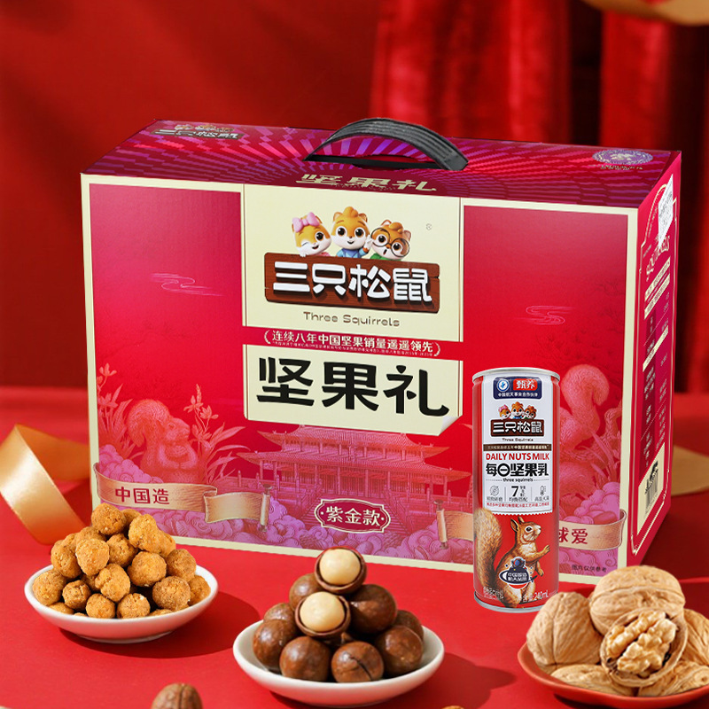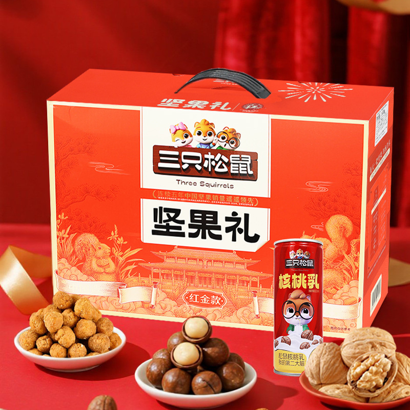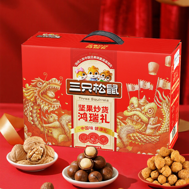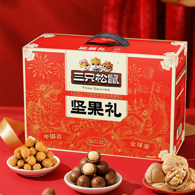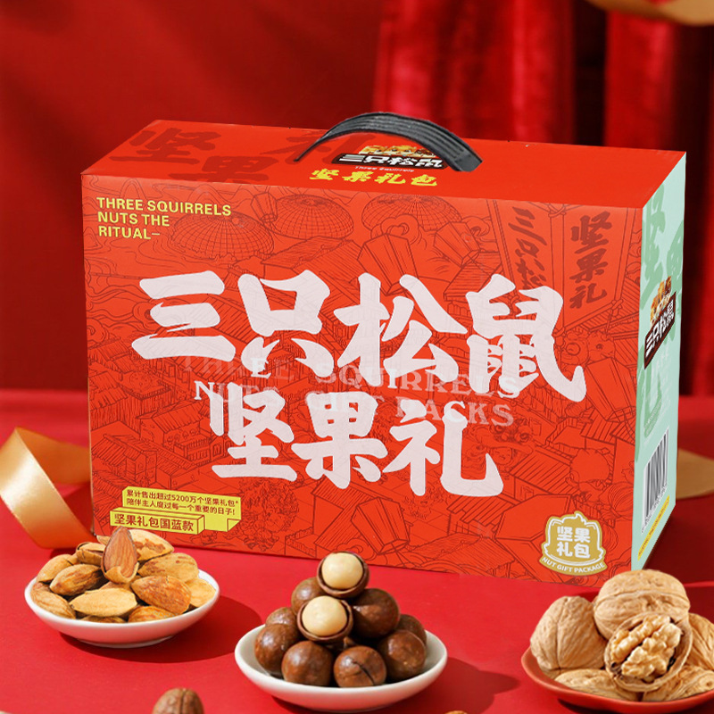 リス三匹の赤い金のナッツの大礼箱1590g/10袋の大ギフトバッグのレジャー食品の年の祝日の組み合わせ