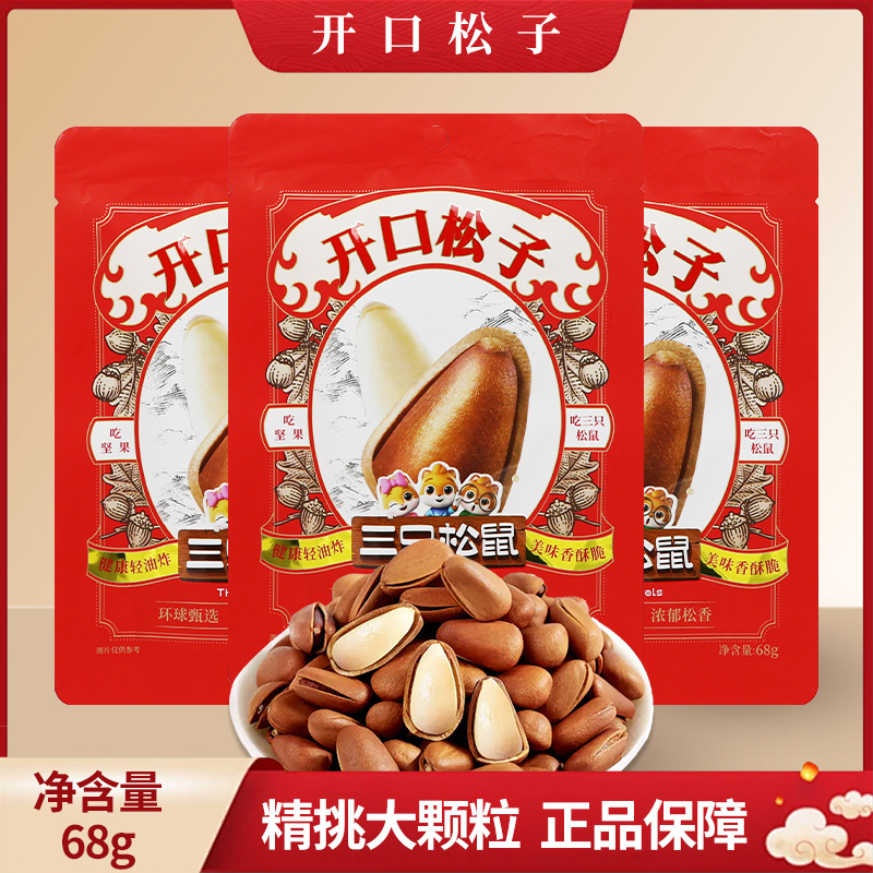 3匹のリスが松子を口にした68g袋のカジュアルな間食の原味東北特産の赤い松子包郵便