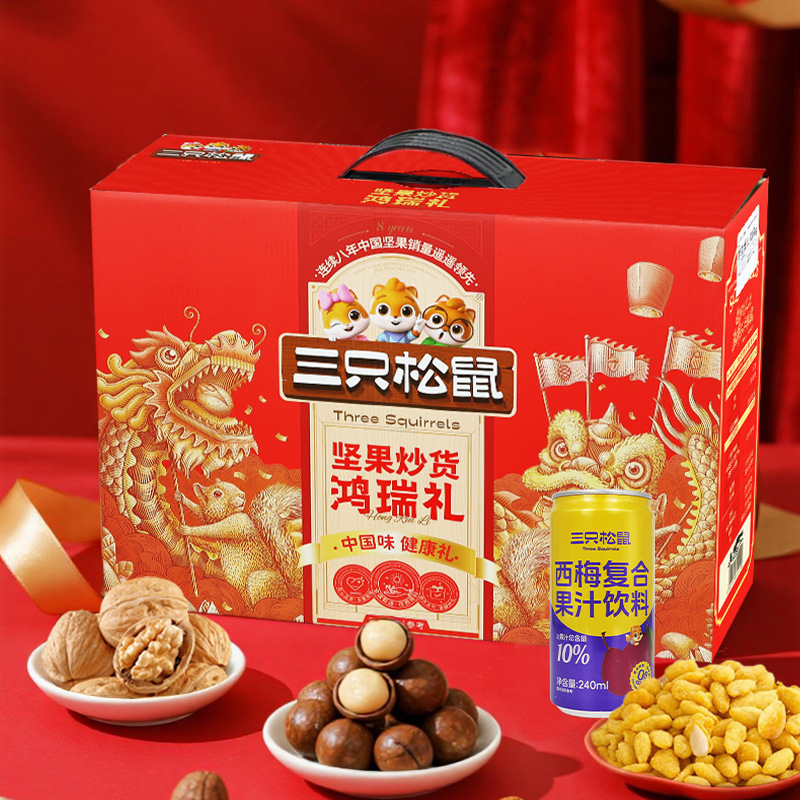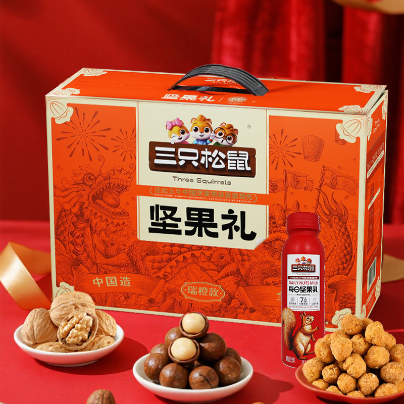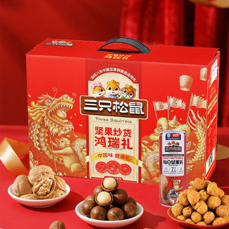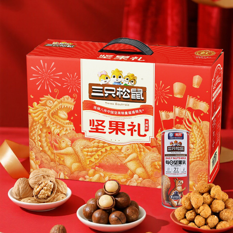 端午節新作 三只松鼠 龍騰風ナッツギフトボックス 1460g/8袋入り 大容量ミックスギフトボックス ホリデーギフト