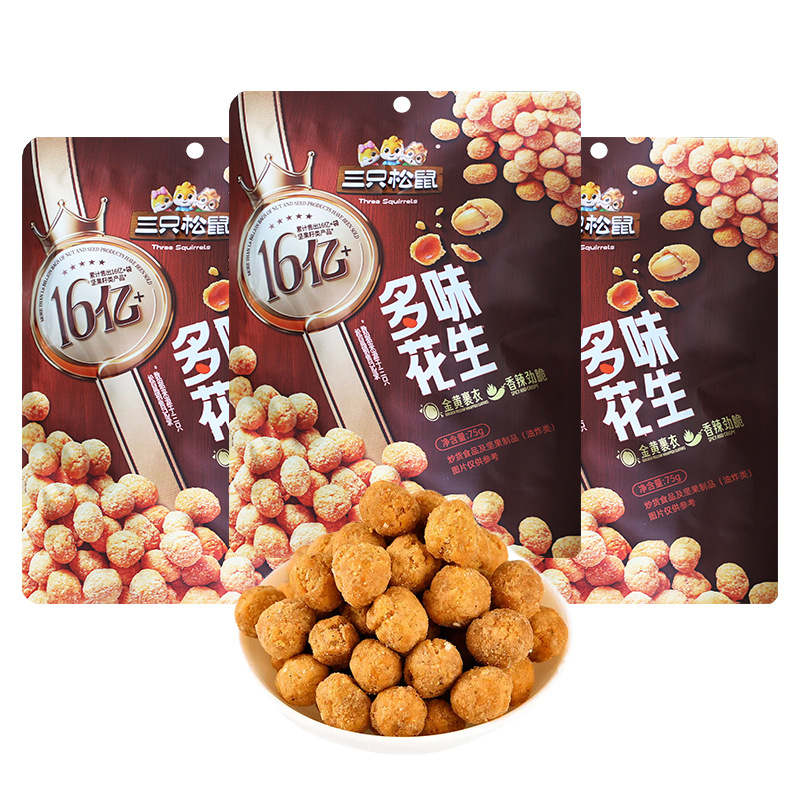 3匹のリスの多味の落花生の75gを代行して商品を炒めます。
