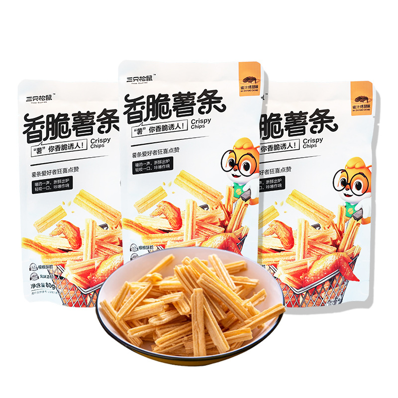 リス3匹を代理して、サクサクとした105g/袋のポテトを膨化させたスナックのサクサクとしたカジュアルなスナックを郵送します