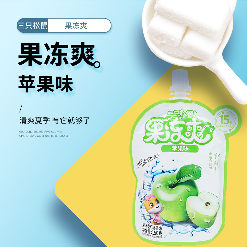 3匹のリスのゼリー爽150gの青リンゴの味が夏の子供の食欲をそそる軽食を吸う