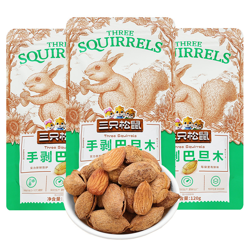 3匹のリスのバダンの木185g/袋のカジュアルな手はバダの木の間食のナッツの乾燥した果物を剥ぎ取ってサクサクしている