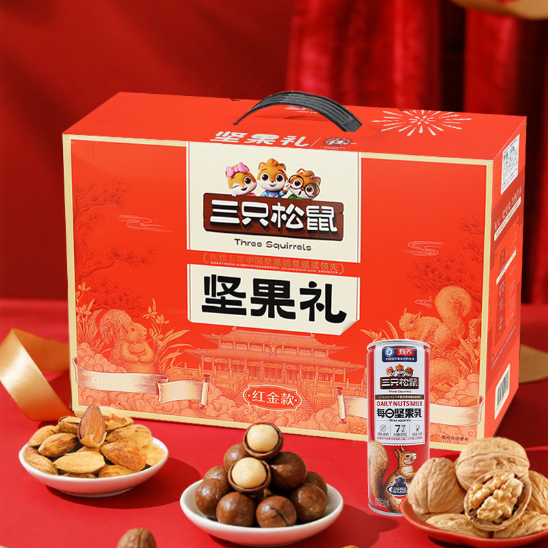 リスのナッツのギフトボックスの赤い金の1613g/9袋の間食のギフトバッグのナッツのドライフルーツのギフトボックスの箱全体