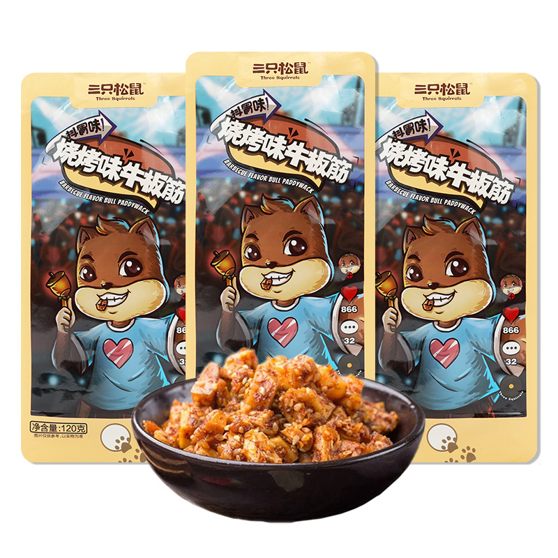 3匹のリスを代行して味の牛の板の筋の120gの牛肉の乾燥の麻の辛い軽食の肉食の熟食を焼きます。