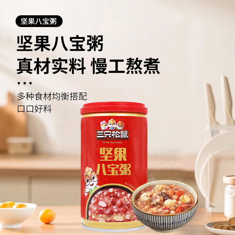 3匹のリスの毎日ナッツ蓮子八宝粥320gのナッツを混ぜて朝食を食べます。