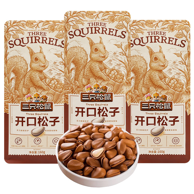 一件代发三只松鼠开口松子160g/袋原味东北特产松子坚果零食干果