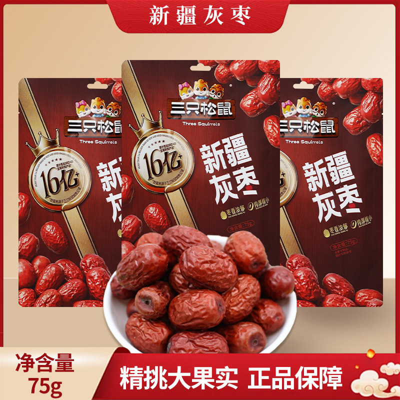 ドロップシッピング 3 つのリス新疆グレーデーツ 75 グラムレッドデーツ若強グレーデーツ袋詰めすぐに食べられる楼蘭無洗浄送料無料