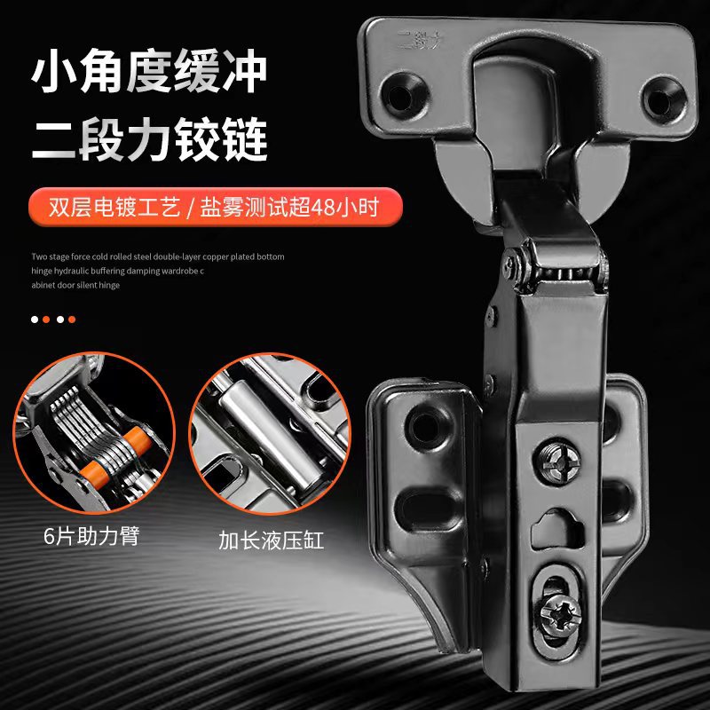 二段力蝶番小角度クッション付きガンブラック35カップヒンジ全ダンピングタンス静音油圧クッション