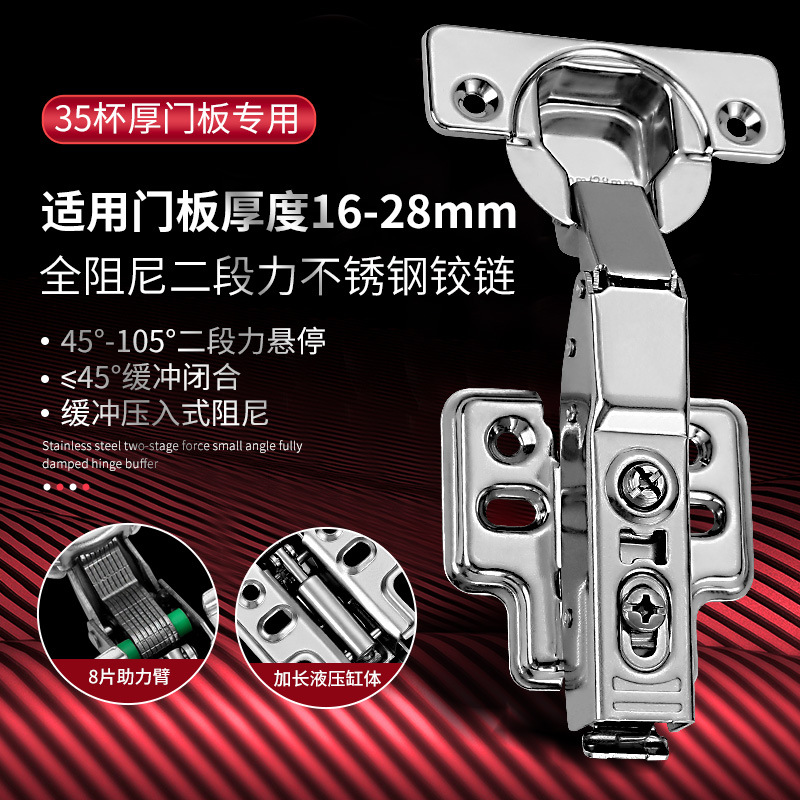 厚門二段力小角度緩衝鉄ダンピングステンレスヒンジ105度28厚板キャビネットヒンジ