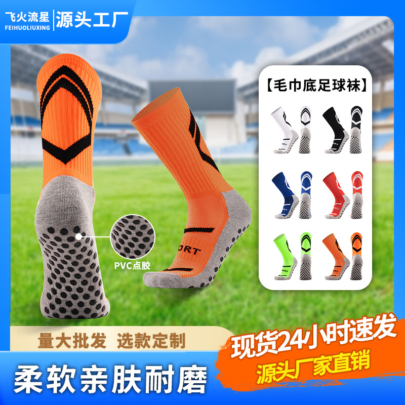 春と夏のドットサッカーソックスメンズミッドチューブノンスリップソックスタオル底肥厚シリコーン子供のプロスポーツソックス卸売